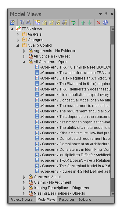 - Quality Control e.g. Arguments - No Evidence, All Concerns - Open, Claims - No Argument, Missing Descriptions - Objects, No Links & Not in Any View
