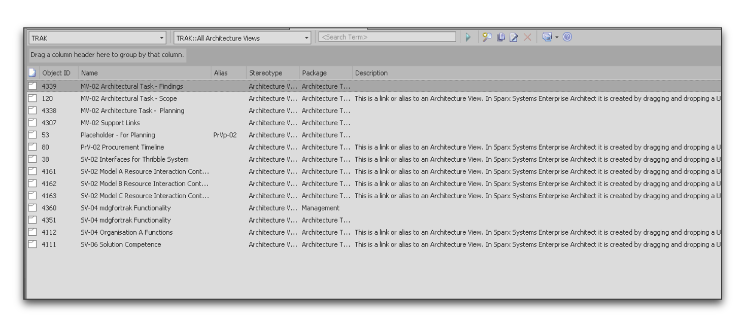 - ‘All Systems’, ‘All Open Concerns’, ‘Objects without Any Links and Not in a View’, ‘Objects Without a Description’